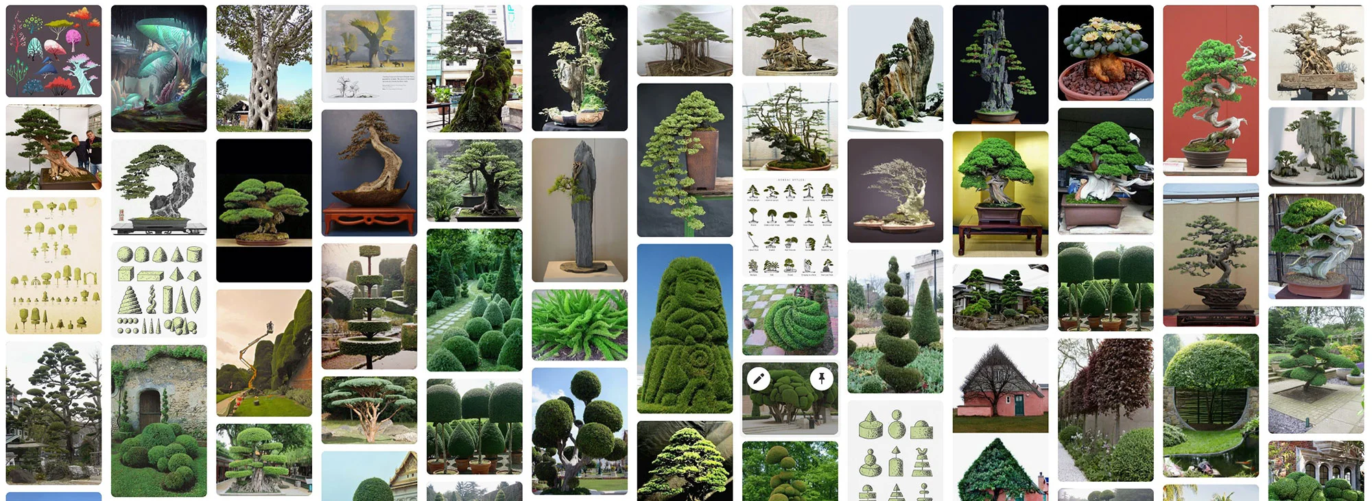 This Pinterest board was centered on shapes for trees. One of the terms I used to describe the tree and bush visuals was “magical topiaries”.