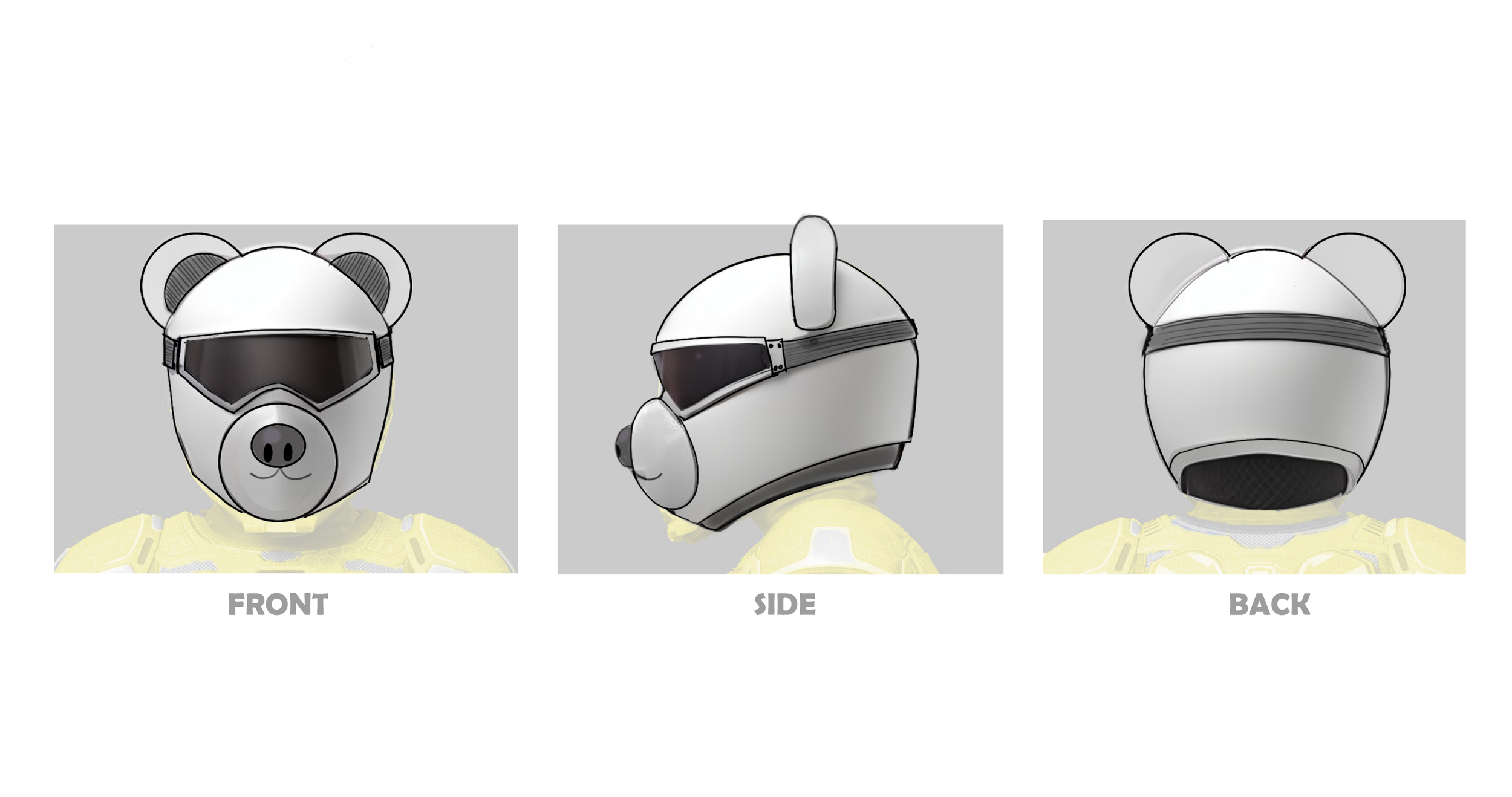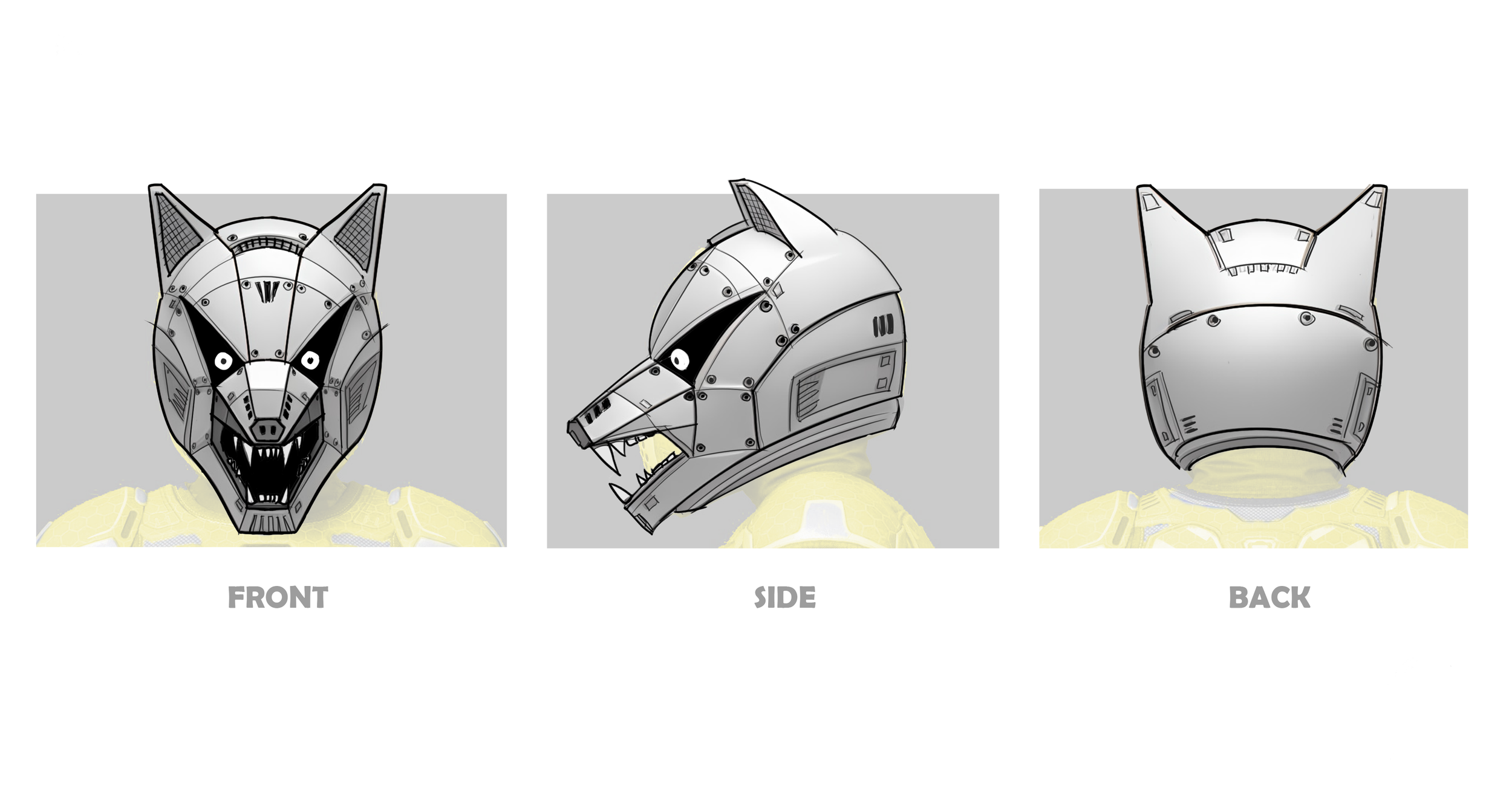 The following concept art is helmet designs for Gravity Ball, a mini game within The City, NBA2K2025. These helmets are available for in-app purchases, allowing players to customize their player character for either team colors, blue or yellow. This helmet will replace the default team-color helmet. Construction drawings were carefully crafted to guide the character modelers in building accurate models with the constraint of fitting and not overly exceeding the footprint of the original helmet model.