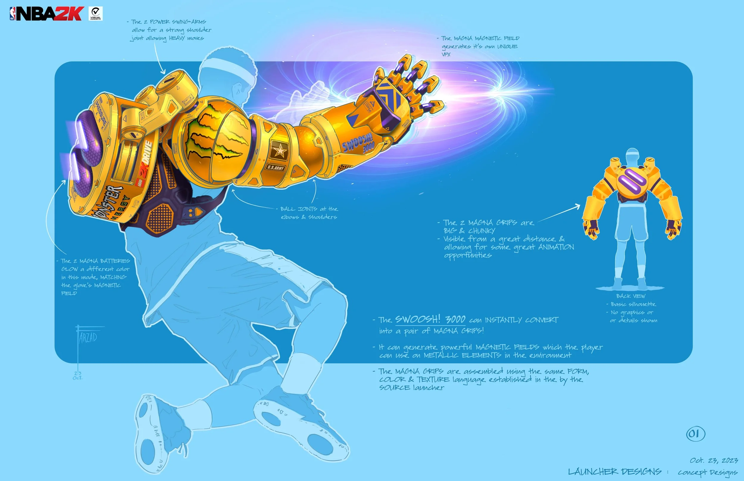 The Magna Grips—core to both movement and identity in Gravity Ball—were one of the most creatively rich and versatile elements we tackled during the concept art process. As the gear that allows players to grip, swing, vault, and anchor themselves mid-air, these gloves were not just equipment—they were style statements. Our exploration spanned the spectrum from practical sportswear to the wonderfully absurd, always with the goal of empowering player expression while supporting dynamic gameplay.